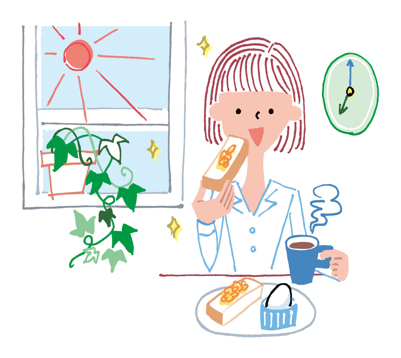 朝食の時間が遅くなってしまうと、身体にある子時計が1日の始まりを認識しにくくなりますから、リセット効果が薄れてしまいます。生活スタイルによって、起床時間はそれぞれ異なりますから、何時までにとは言えないのですが、起床からできれば1時間以内に、遅くとも2時間以内に摂るようにしてください。