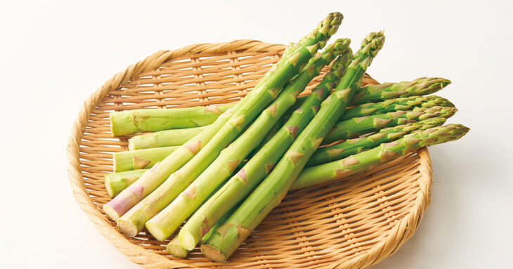 寒い冬を越え、春先に芽を出すアスパラガス。鮮やかな緑色が料理を彩り、抗酸化力に優れたβ-カロテンやビタミンC・Eが豊富な緑黄色野菜です。アスパラガスから発見されたアミノ酸の一種・アスパラギン酸は、栄養ドリンクの成分に使われるほど疲労回復に効果的。さらに、血管を強化し血流改善効果のあるルチンは、高血圧や動脈硬化など生活習慣病の予防に役立つといった、健康効果が注目されています。